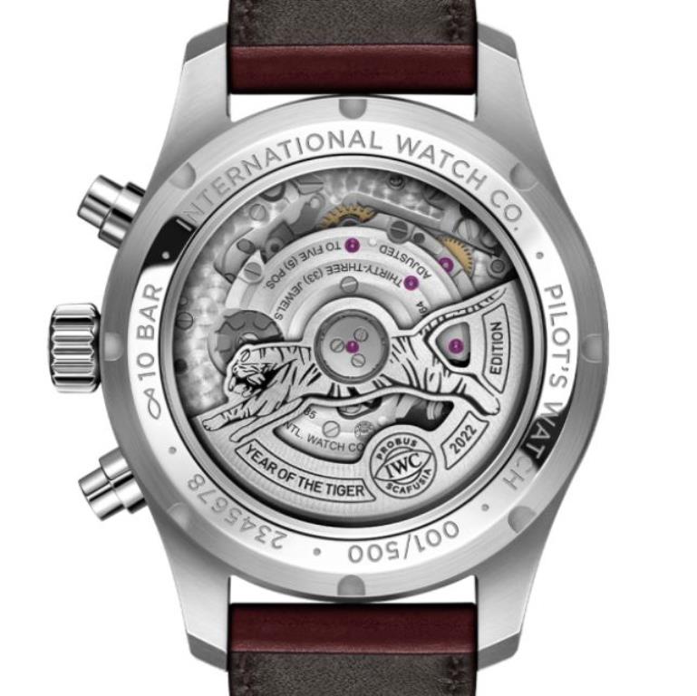 Številčnica navdušuje z ikoničnim dizajnom v slogu lahko berljivega instrumenta v pilotski kabini, ki je postal zaščitni znak IWC-jevih pilotskih ur. Vendar pa je pravi vrhunec te omejene izdaje viden šele, ko obrnete uro in se skozi zadnjo stran ohišja iz safirnega stekla čudite kalibru 69380, ki ga je izdelal IWC. Rotor avtomatskega sistema navijanja ima obliko tigra. Tiger, upodobljen v teku in poskoku, služi kot opomnik na prihajajoče leto, hkrati pa poudarja lastnosti ljudi, rojenih v znamenju te živali zodiaka.