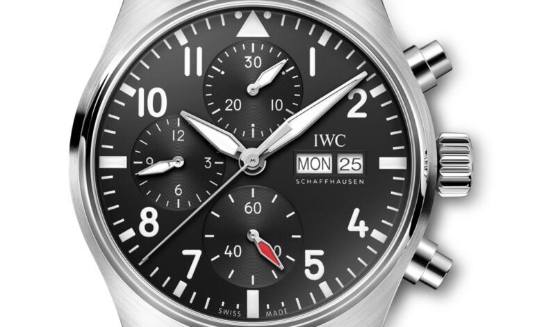 IWC Pilot’s Watch Chronograph 41, z referenčno številko IW38111, je opremljen s črnim paščkom iz telečjega usnja in je naprodaj za 8.300 evrov, medtem ko je referenčna oznaka IW388113 pritrjena na zapestnico s petimi členi iz nerjavečega jekla, s katero se cena dvigne na 9.300 evrov.