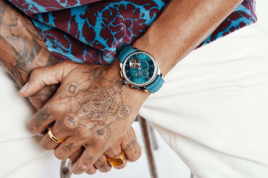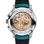 IWC Portugieser Tourbillon Rétrograde Chronograph Lewis Hamilton Edition je pravi dokaz za IWC-jevo zavezanost obrti in inovacijam. Ohišje ure je izdelano iz platine, medtem ko se modra številčnica s srebrnimi poudarki, poklonija barvam Hamiltonovega dirkalnega avtomobila. Turbillon, funkcija retrogradnega kronografa in impresivnih 68 ur rezerve moči prikazujejo urarsko mojstrstvo ure.