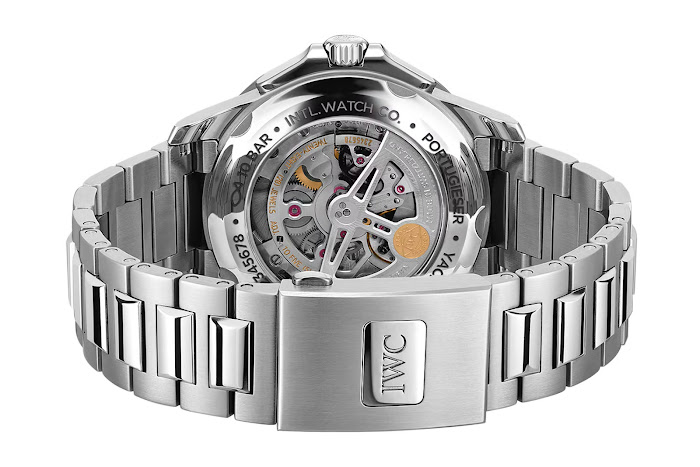 Zapestna ura, ki ponuja domiseln prikaz delovanja plime in oseke v kombinaciji z IWC-jevo značilno dvojno lunino meno za severno in južno poloblo, je bila prej na voljo le v rdečem zlatu z modro številčnico.