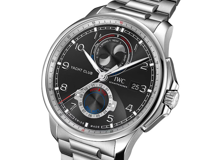 Zapestnica iz nerjavečega jekla s členki v obliki črke H je lepo obdelana s poliranimi in satenastimi površinami. Zložljiva zaponka z metuljčkom izboljša udobje pri nošenju. IWC Portugieser Yacht Club Moon & Tide iz nerjavečega jekla, ref. št. IW344002, ima priporočeno maloprodajno ceno 25.000 evrov.