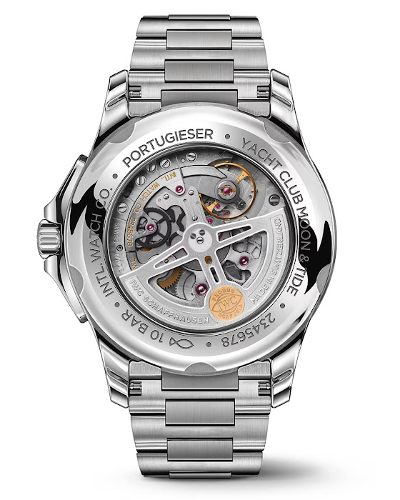 Zapestna ura, ki ponuja domiseln prikaz delovanja plime in oseke v kombinaciji z IWC-jevo značilno dvojno lunino meno za severno in južno poloblo, je bila prej na voljo le v rdečem zlatu z modro številčnico.