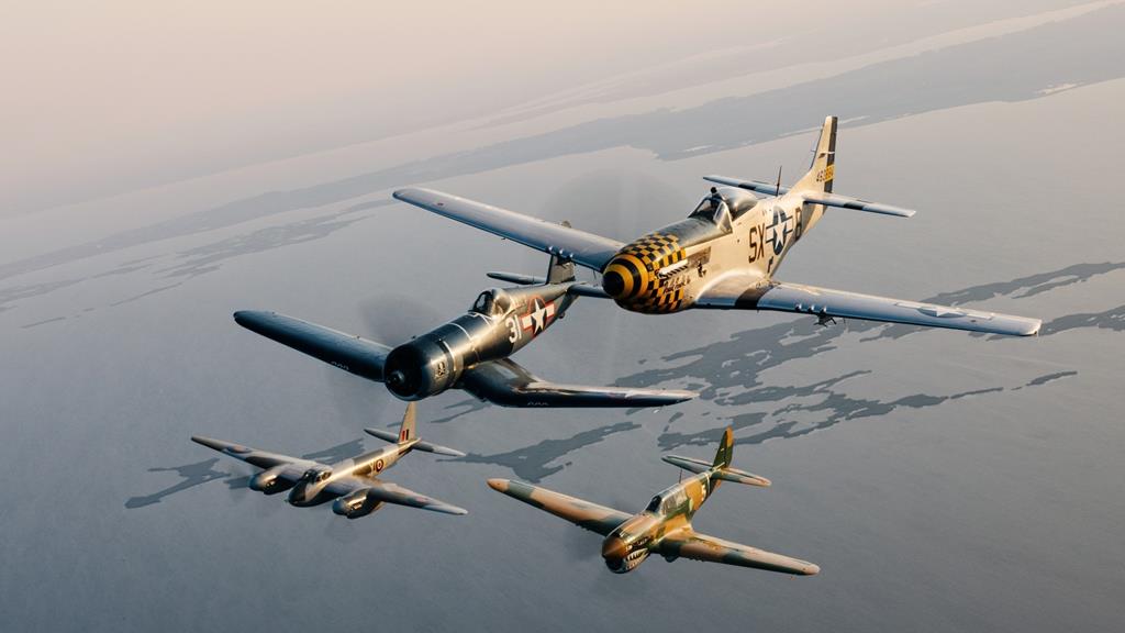 Na poletu so sodelovala letala North American Aviation P-51 Mustang, najboljši vsestranski lovec iz obdobja druge svetovne vojne; Vought F4U Corsair, pomorsko letalo, ki podira rekorde; izjemno redek de Havilland Mosquito, znan kot “Wooden Wonder”, in Curtiss P-40 Warhawk, mojster agilitija, čigar značilnost je slika zobovja morskega psa na nosu.
