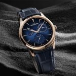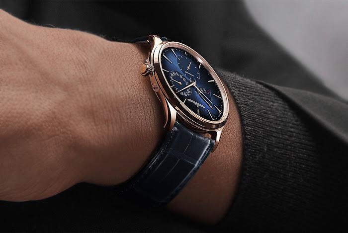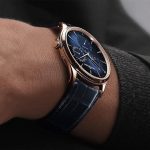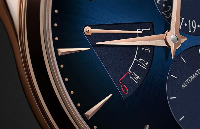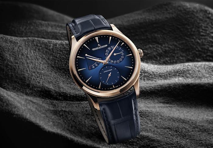 Nova ura Jaeger-LeCoultre Master Ultra Thin Power Reserve iz rožnatega zlata z gradientno polnočno modro sončno številčnico, ref. Q137258J, ima priporočeno prodajno ceno 23.200 evrov.