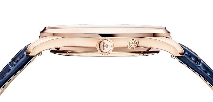 Elegantno ohišje, izdelano iz 18-karatnega rožnatega zlata, uokvirja prefinjeno številčnico z večjimi podštevilkami, zaradi katerih so datum, rezerva moči in ”tekoče” sekunde še bolj čitljivi kot prej. Podolgovata kazalca za ure in minute sta narajena v stilu Dauphine, medtem ko za prikaz ur in minut skrbijo indeksi v obliki puščic ter pik. Komponente so narejene iz rožnatega zlata, da se harmonično ujemajo s toplim tonom ohišja.