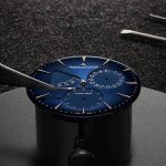 Ura je predstavljena na mornarsko modrem paščku iz aligatorjevega usnja, ki je opremljen z vzmetmi za hitro menjavo ter na zapestje pritrjen z zaponko iz rožnatega zlata. Širina ušes in zaponke je 21 mm oziroma 18 mm.