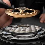 Posodobljeni kaliber 938, ki deluje s frekvenco 4 Hz (28.800 alternanc na uro), se zdaj ponaša z rezervo energije navtija do 70 ur, ki jo zagotavlja en sam valj. Ta prefinjen mehanizem s samodejnim navijanjem, ki ga sestavlja 262 komponent, in njegovo odprto nihajno utež iz rožnatega zlata je mogoče občudovati skozi safirno steklo na hrbtni strani ohišja.