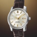 Reinkarnacija King Seiko KSK Limited Edition ostaja zvesta izvirnemu primerku iz leta 1965. Številčnica v barvi šampanjca oživi detajle, medtem ko zlati kazalci in široki fasetirani indeksi spominjajo na prefinjeno eleganco izvirne serije. Kovinsko ohišje premera 38,1 mm prav tako ohranja ostro oblikovana ušesa ter zrcalno polirano površino. Nad številčnico se dviga safirni kristal v obliki škatle z antirefleksno prevleko, ki zagotavlja dobro čitljivost iz katerega koli kota.