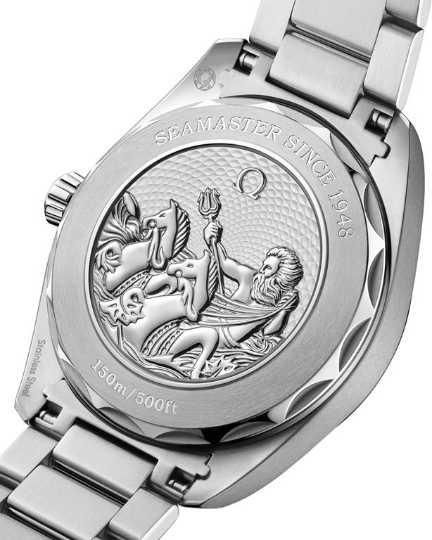 Tehnične specifikacije so ostale nespremenjene, poudarek je na barvnih kombinacijah ter sveži hrbtni gravuri, ki združuje grškega boga Pozejdona in njegov trizob ter dva značilna morska konjička za Omego – enega z zgodovinskim dizajnom iz leta 1956, drugega pa z aktualnim videzom. Pri vseh ročnih urah, izdanih ob 75. obletnici linije Seamaster, je torej zadnji del ohišja iz safirja nadomeščen s tem jeklenim pokrovom z gravuro.