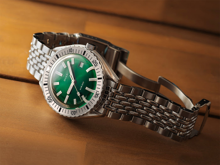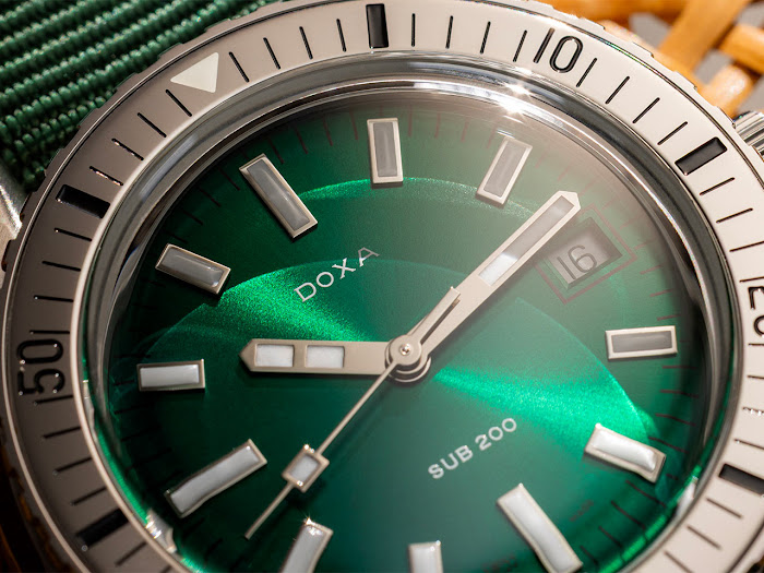 Novi SUB 200 z luneto iz poliranega jekla je na voljo v vseh osmih barvah DOXA – Professional (oranžna), Searambler (srebrna), Sharkhunter (črna), Caribbean (mornarsko modra), Divingstar (rumena), Aquamarine (turkizna), Whitepearl (bela) in Sea Emerald (sončno zelena) – z izbiro ikonične zapestnice iz nerjavečega jekla z zložljivo zaponko, gumijastim pasom FKM ali v primeru modela Sea Emerald s pasom tip ‘nato’. S tem se kolekciji SUB 200 pridružuje 16 novih referenc.