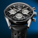 Večja izdaja kronografa Tag Heuer Carrera s premerom kovinskega ohišja 42 mm pa v ospredje postavlja sodoben in dinamičen pogled na duh avtomobilskih dirk. Intenzivno modra številčnica se odlično ujema z modrim paščkom iz telečjega usnja, ki se ponaša z osupljivim oranžnim prelivom in živimi oranžnimi odtenki. Enak kontrast je ustvarjen tudi pri črni različici zapestne ure.