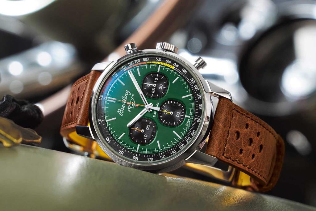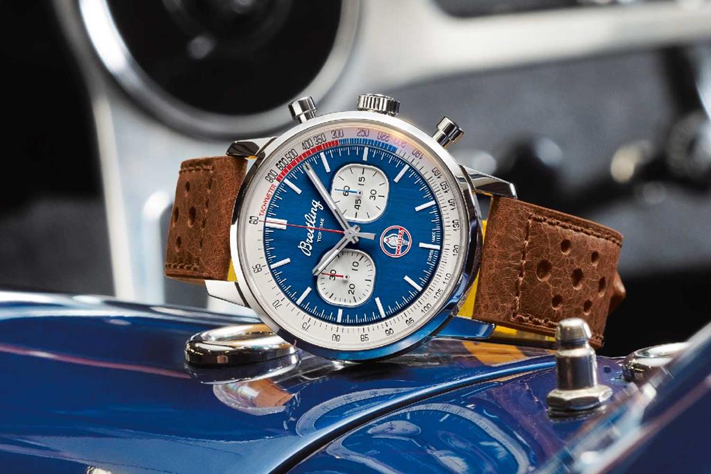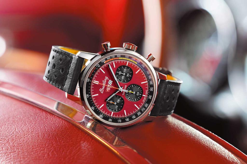 Kolekcija Top Time je glede na Breitlingovo preostalo ponudbo, vedno bila bolj enostavna in preprosta s postavljaškimi številčnicami ter drznim dizajnom. Najnovejše kreacije zelo ustrezajo tej veni: okroglo ohišje s kvadratnimi registri, kazalci z retro inspiracijo ter podrobnosti na številčnicah. K temu še dodamo logotipe avtomobilskih znamk ter gumbe kronografa v obliki batov in pred sabo imamo všečen časomer za hrepeneče avtomobilske nostalgike.