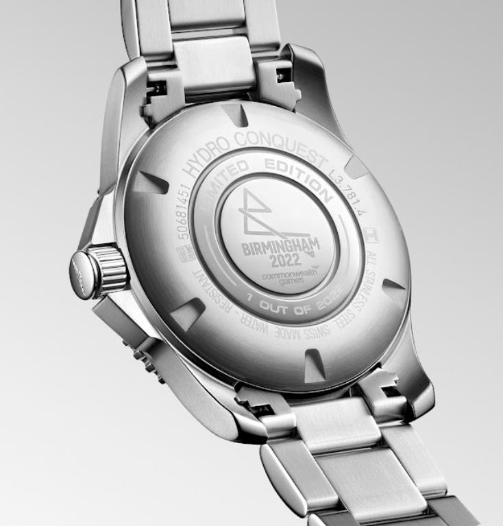 Na privito kovinsko hrbtno stran ohišja je vgraviran logotip Birmingham 2022 in zapis »Limited Edition – 1 out of 2022«. Longines HydroConquest XXII Commonwealth Games z referenčno številko L3.781.4.59.6, je na voljo v omejeni izdaji 2.022 kosov z maloprodajno ceno 1.900 evrov.