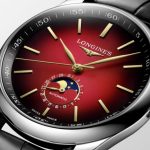 Master Collection Year of the Horse 2026 ima temno rdečo številčnico brušeno v stilu sočnih žarkov in dramatičen preliv, ki se proti robu temni. Rdeča barva v kitajski kulturi namreč simbolizira srečo, veselje, blaginjo ter varnost. Ker je v kitajski tradiciji kombinacija rdeče in zlate barve še bolj ugodna, ima številčnica pozlačene indekse, zlat krilati logotip Longines ter pozlačene listaste urne in minutne kazalce.