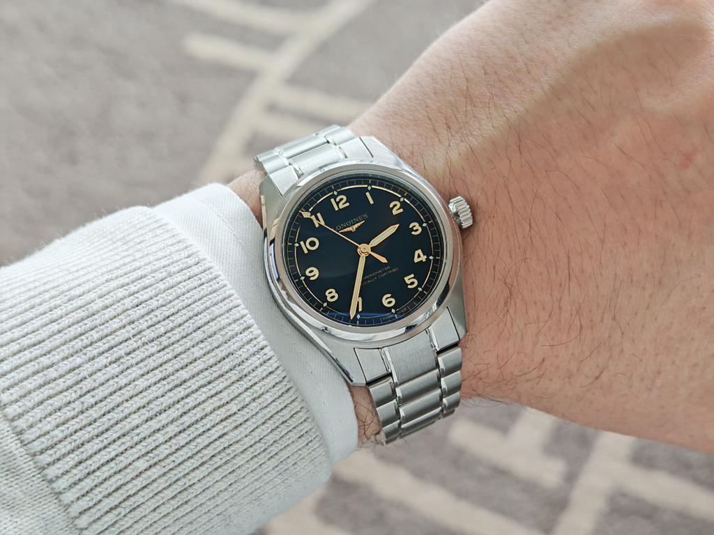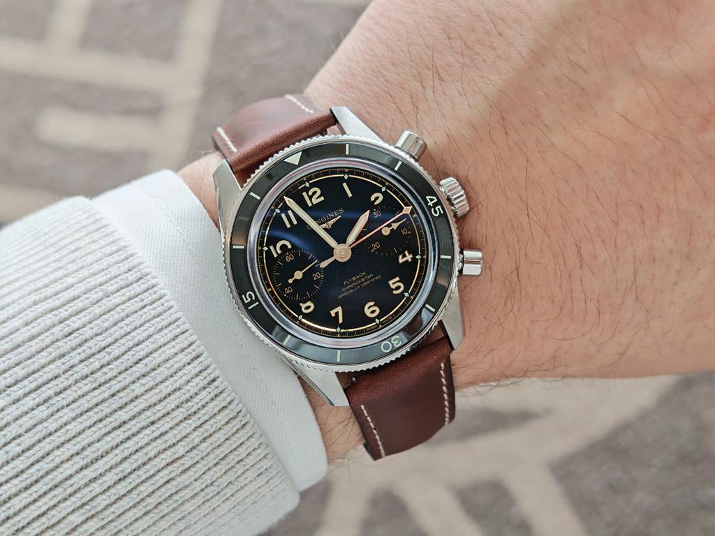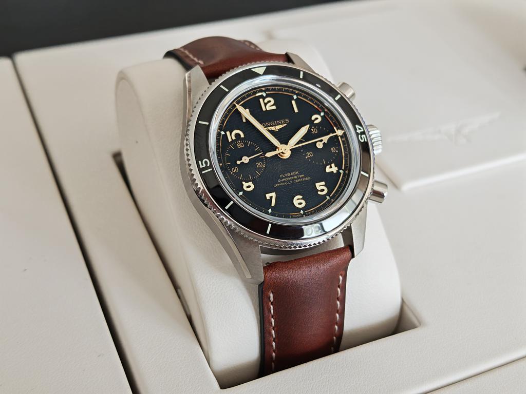 Spirit Pilot Flyback slavi flyback mehanizem, ki ga je Longines hišno razvil v 30. letih prejšnjega stoletja. Ohišje ure iz nerjavečega jekla ima premer 39,5 mm in debelino 13,4 mm, vključno s kvadratastim safirnim steklom in dvosmerno vrtljivo keramično luneto s skalo za odštevanje. Za občutek, prejšnji Longines Spirit Flyback ima premer 42 mm in debelino 17 mm!