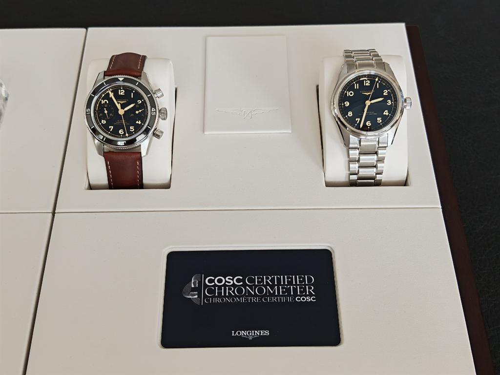 Mat črna številčnica z zlatimi številkami in svetlečimi kazalci je podobna tisti iz prejšnjih kronografov Spirit. Odstranitev petih zvezdic je prav tako v skladu s povratnimi informacijami ljubiteljske skupnosti. Longines ponuja ta model z jekleno zapestnico ali rjavim usnjenim paščkom, oba z možnostjo mikro nastavitve.