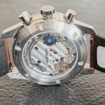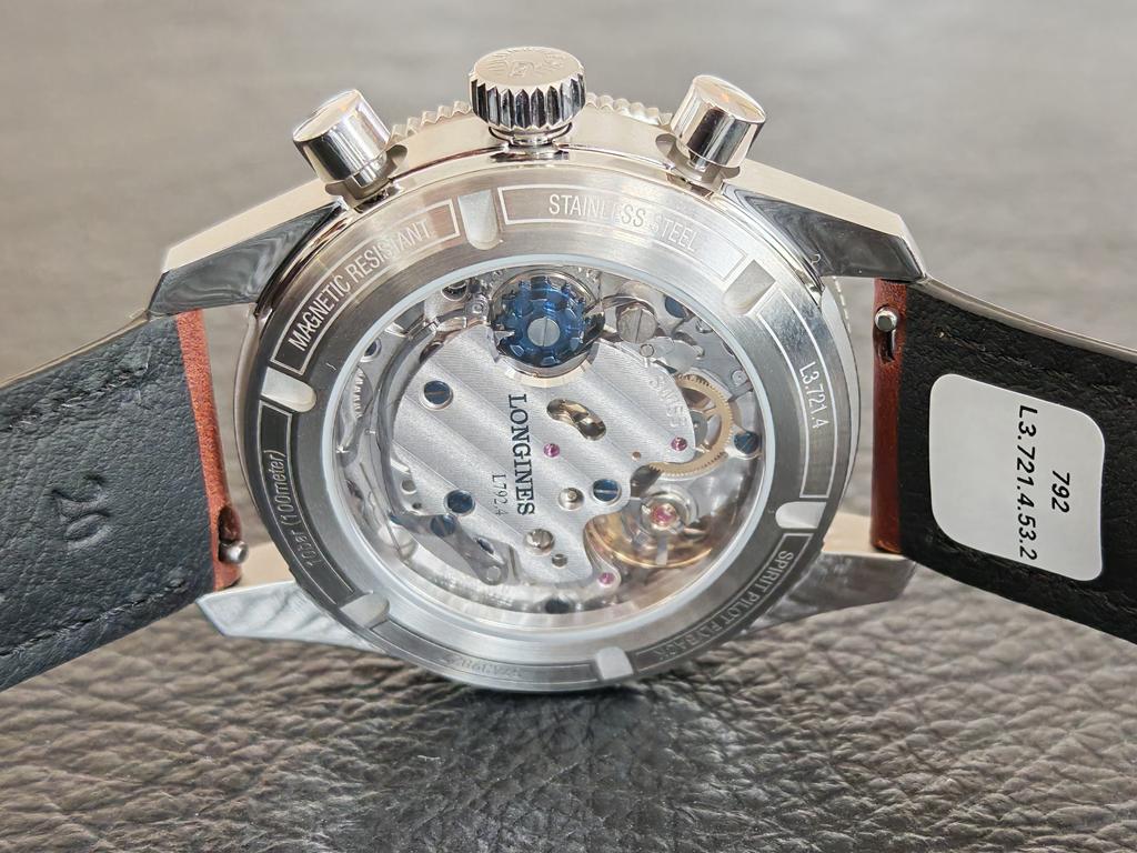 V notranjosti najdemo ročno navijalni mehanizem kaliber L792.4, ki je viden skozi safirno steklo na zadnji strani ohišja. Ta kronografski kaliber s kolutnim kolesom združuje funkcijo flyback z 68-urno rezervo energije navitja in kronometrskim certifikatom COSC. Vstopna cena modela znaša 5.200 evrov v kombinaciji z usnjenim paščkom.