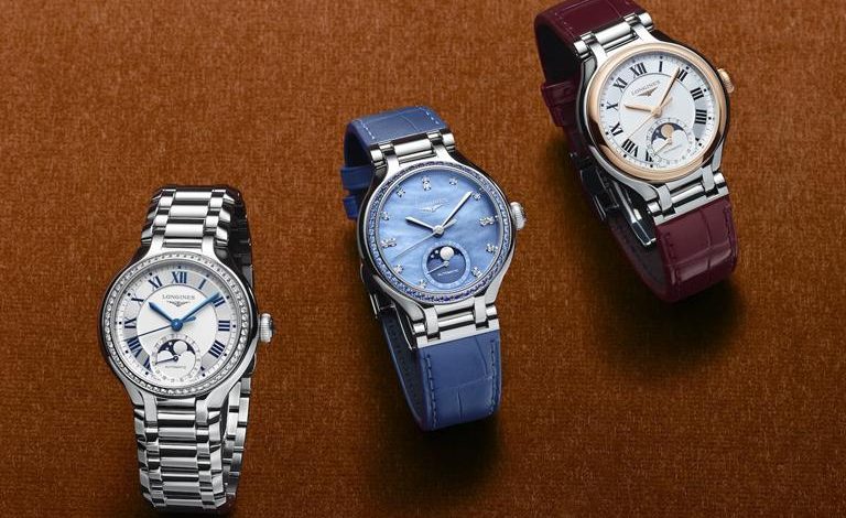 PrimaLuna je na voljo s klasičnimi srebrnimi številčnicami s teksturo v stilu sončnih žarkov, izrazitimi rimskimi številkami in vdolbinastim osrednjim delom, pa tudi z belimi ali modrimi številčnicami iz biserov, dopolnjenimi s 14 diamantnimi indeksi. Vsi modeli imajo komplikacijo faze mene ob 6. uri, ki je zdaj dopolnjena s kazalcem datuma ter klasičnimi kazalci ur in minut v obliki palice. Zaplete poganja avtomatski mehanizem, kaliber L899.5 (ETA A31.L91, izdelan izključno za Longines) s silikonsko vzmetjo, ki zagotavlja robustno 72-urno rezervo energije navitja in je viden skozi safirni kristal hrbtne strani ohišja.