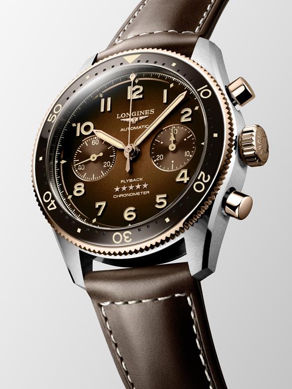 Model Spirit Flyback se ponaša z različnimi oblikovnimi detajli pilotske tematike, z mislijo na vsakodnevno uporabnost in malce vintage pridiha. Ura je poklon prvemu človeku, ki je preletel južni tečaj, Richardu Byrdu, ki je v tistih časih na svojih nevarnih ekspedicijah nad Antarktiko nosil kronograf Longines 13ZN flyback.