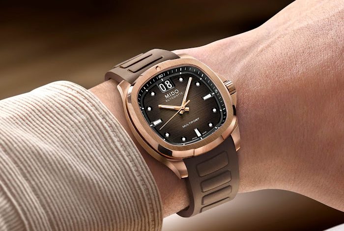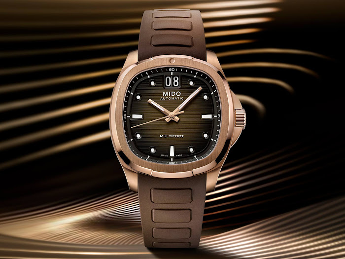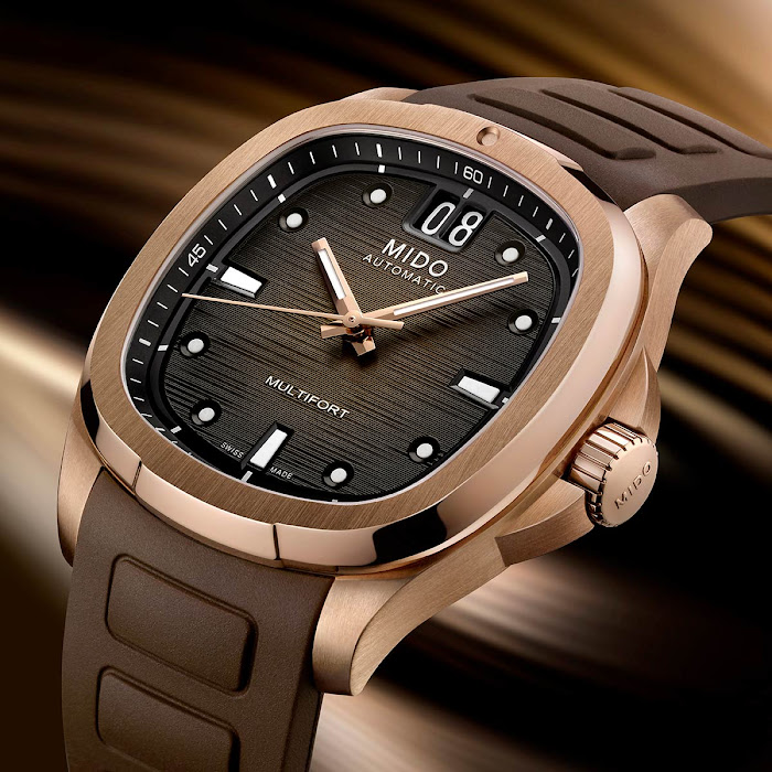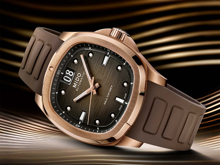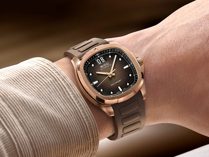 Mido Multifort TV Big Date v rožnato zlatem PVD-ju bo kmalu na voljo po priporočeni maloprodajni ceni 1.300 evrov v izbranih butikih Slowatch po Sloveniji.