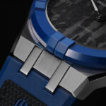 Berljivost številčnice je izboljšana s safirnim steklom z antirefleksnim premazom na obeh straneh, ki izboljšuje prepustnost svetlobe in povečuje odpornost na slano vodo. Kupci lahko izbirajo med ohišji iz nerjavečega jekla ali črnega titana z DLC-premazom, medtem ko so površine ohišja brušeno ali polirano zakljulčene.