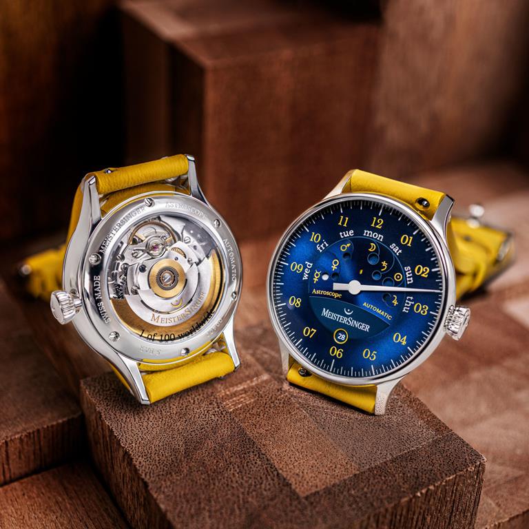 MeisterSinger Astroscope Special Edition Blue/Yellow bo na voljo od sredine marca v omejeni nakladi 100 primerkov. Cena časomera je nastavljena na 2.190 evrov.