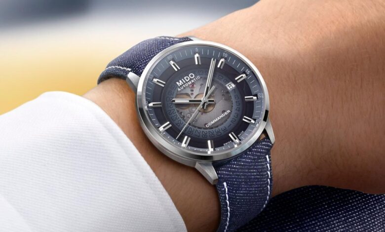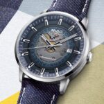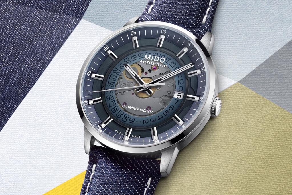 Mido je pred tremi leti sledil najnovejšim trendom v urarstvu, in tako razkril mehanizem pod številčnico modela Commander. Letošnje poletje se linija ponovno predstavlja z referenco s hladno modro gradientno številčnico ter paščkom iz džinsa.