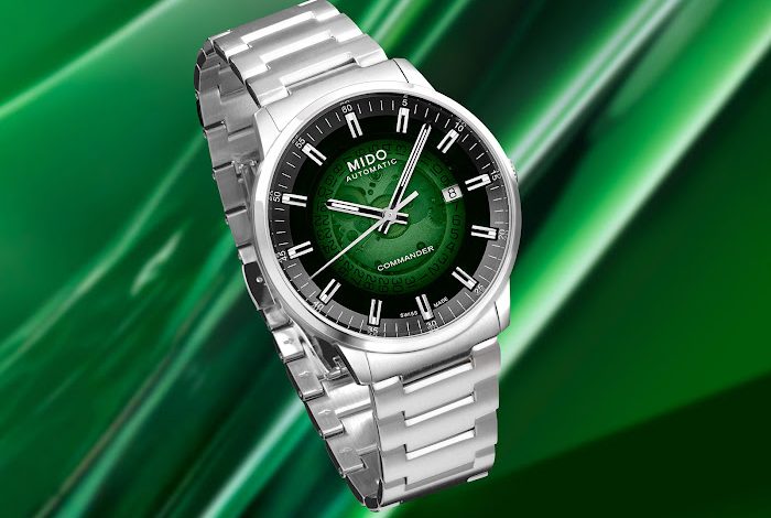 Nova ura Mido Commander Gradient z zeleno obarvano številčnico ima predlagano maloprodajno ceno 1.100 evrov in si jo boste kmalu že lahko ogledali v butikih Slowatch po Sloveniji.
