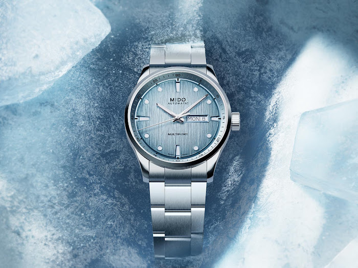 Mido širi svojo zbirko Multifort z različico M Freeze, športnim modelom s tremi kazalci, ki ga zaznamujeta ledeno modra številčnica s subtilnim prelivom ter osupljivim navpičnim satenastim zaključkom.