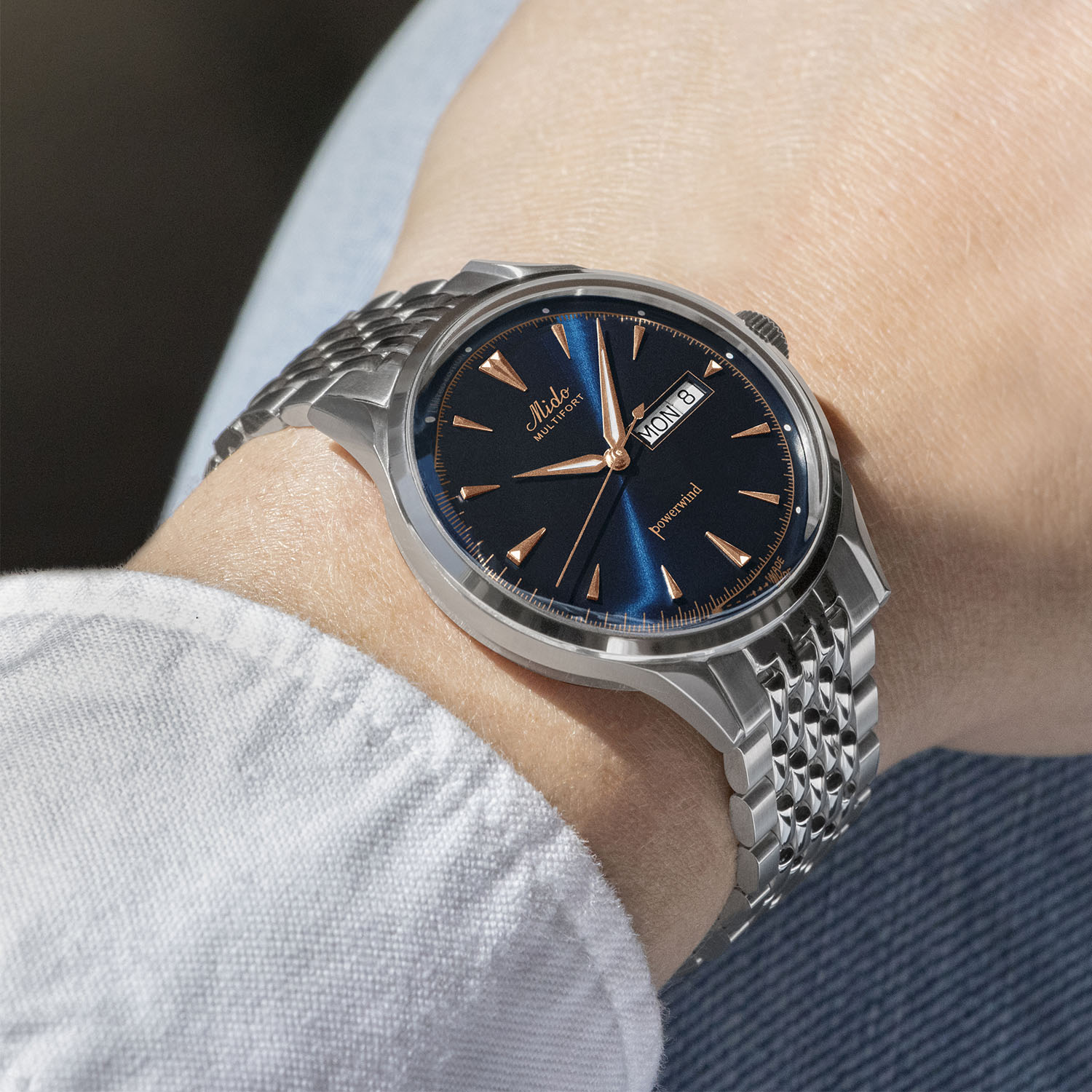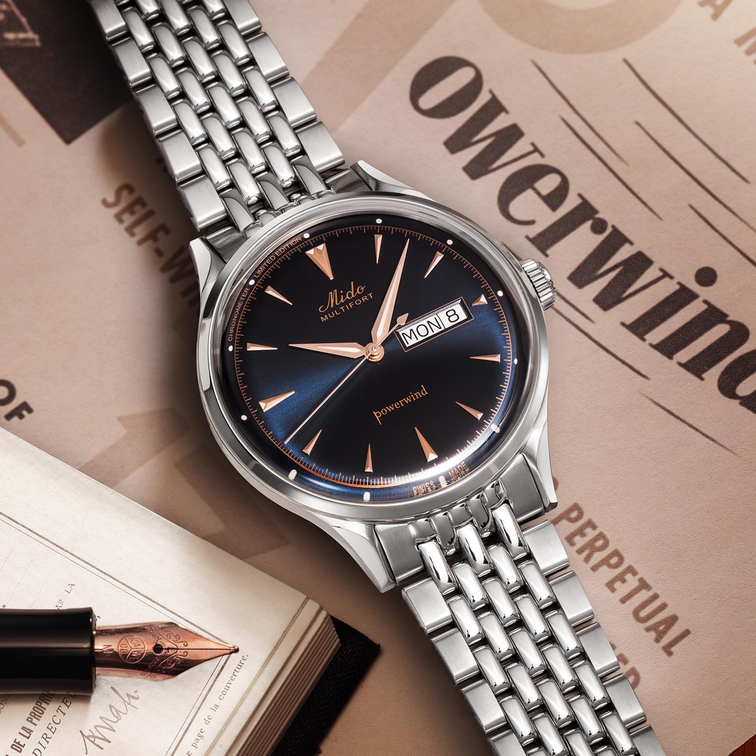 Multifort Powerwind Chronometer s svojim retro videzom in izjemno zanesljivostjo predstavlja pomemben mejnik v zgodovini podjetja Mido in njegovega vseživljenjskega strokovnega znanja in urarskih izkušenj. Ta omejena izdaja s 1.954 primerki je poimenovana po revolucionarnem modelu Powerwind, izdanem leta 1954.