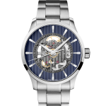 Multifort Skeleton Vertigo Blue razkriva svoj mehanizem na osupljiv in očarljiv način. Globoko moder zunanji obroč ure se lesketa s kovinskim sijajem ter se popolnoma ujema s satenastim brušenim jeklom ohišja. Visoko tehničen, a športen, s popolnoma edinstvenim obrazom, ta osupljivi zapestni kos resnično izstopa.