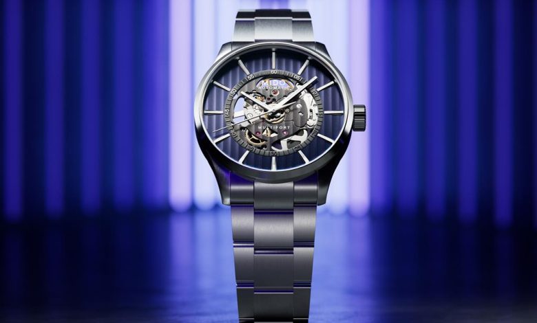 Mido Multifort Skeleton Vertigo Blue, z referenčno številko M038.436.11.041.00, je opremljen s 3-člensko zapestnico iz nerjavečega jekla z zložljivo zaponko. Cena predstavljenega modela znaša 1.200 evrov, več informacij pa dobite v butikih Slowatch, kjer lahko uro tudi preizkusite na vašem zapestju.