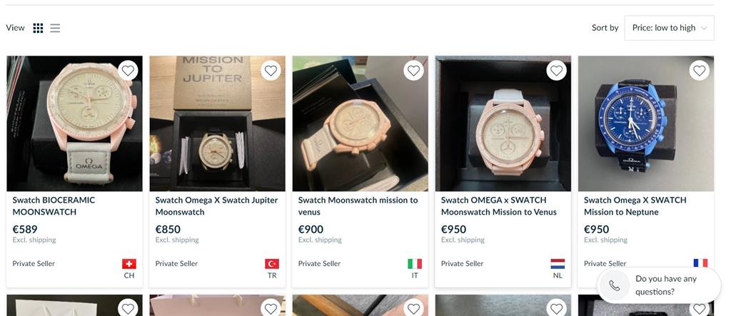 A očitno takšnih ”kalibrov” vseeno ne manjka, saj se je bojda kar nekaj ur prodalo za več tisočakov. Hiter skok na spletno mesto chrono24 razkrije, da je potrebno za najugodnejšo Omego Moonswatch odšteti dvakratnik nabavne cene. Na drugi strani se na 12 tisočakov ceni model z nebeško modro številčnico, ki cilja na kupce, kateri želijo ”kao Tiffany” izdajo. S tem pa že pridemo do naslednjega direndaja, o katerem smo že pisali tukaj …