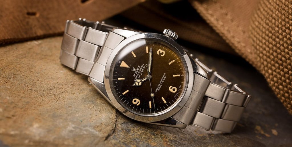 V romanih je omenjeno zgolj to, da Bond nosi težak Rolex Oyster Perpetual na raztegljivi kovinski zapestnici z luminescentnimi številkami, kar je vohunu ustrezalo zaradi robustnosti in čitljivosti samega časomera. Ian Fleming, prav tako član britanske obveščevalne službe med drugo svetovno vojno, je na svojem zapestju nosil model Rolex Explorer z referenco 1016, na podlagi česar lahko sklepamo, da je uro pripisal še knjižnemu junaku.