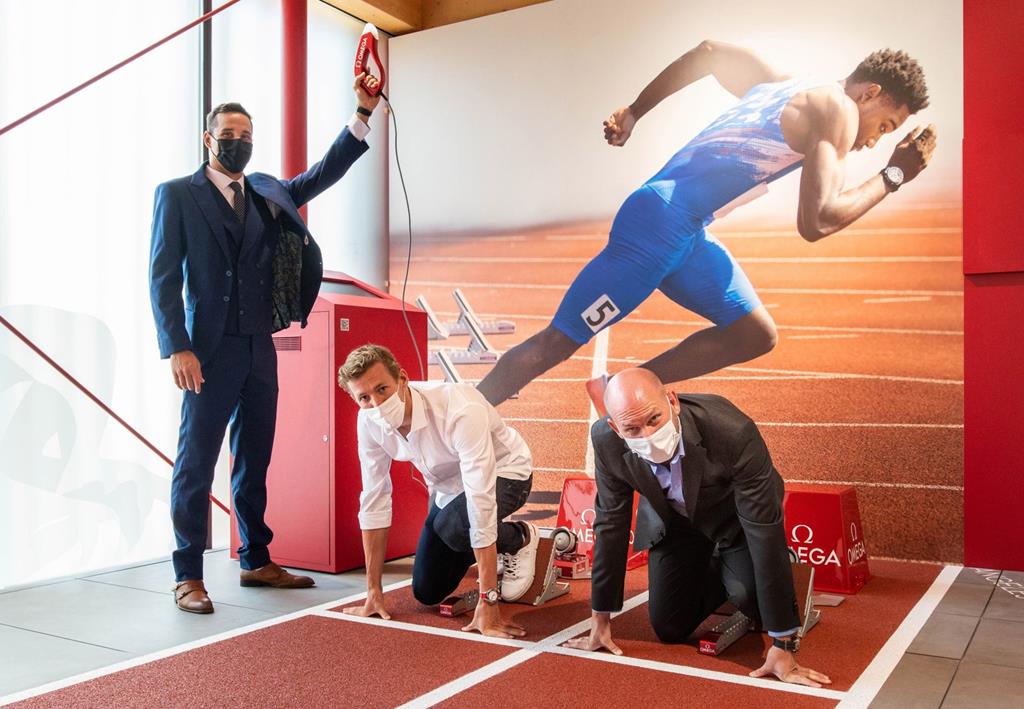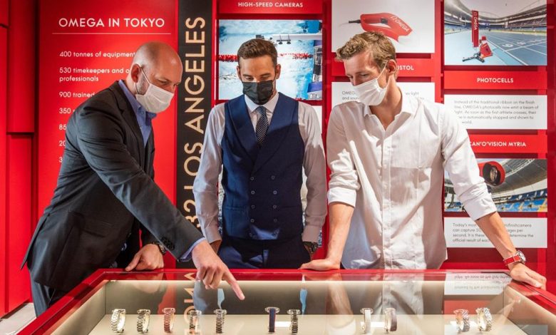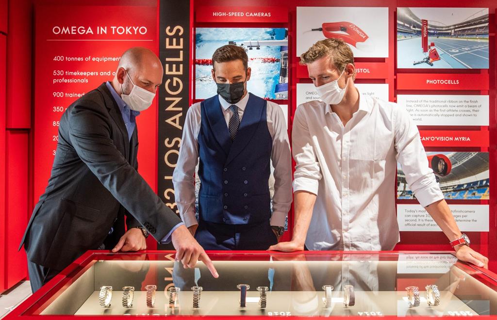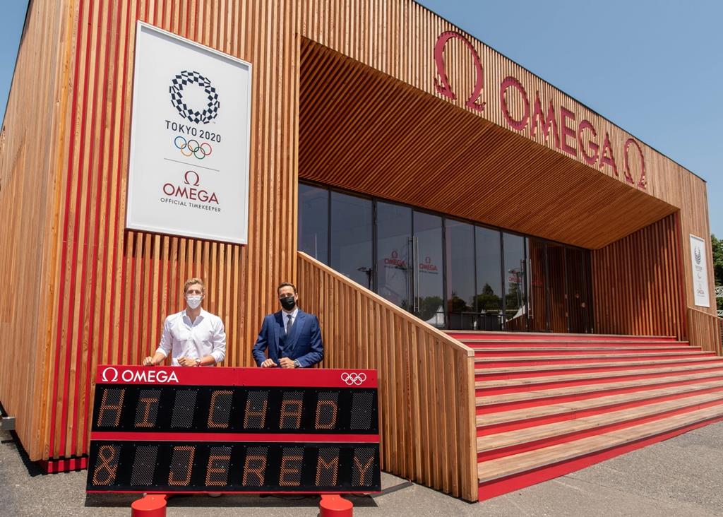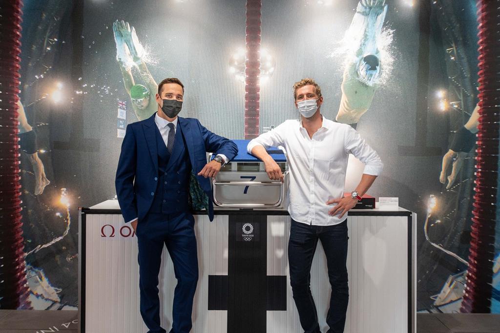 Južnoafriški Chad Le Clos in švicarski plavalec Jérémy Desplanches sta se kot slavna gosta udeležila predstavitve tehnologij uradnega časomerilca olimpijskih iger v Tokiu.
