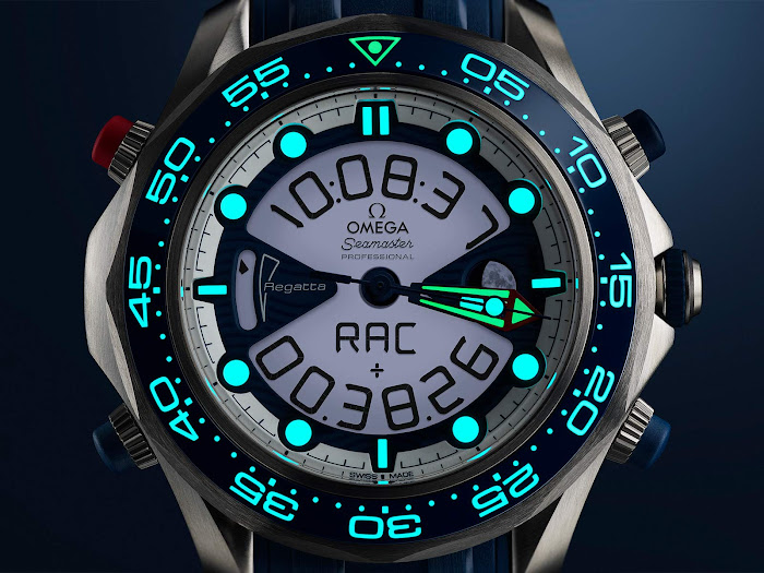 Nova ura Omega Seamaster Regatta, ref. 216.92.46.79.10.001, je opremljena z integriranim modrim gumijastim paščkom, pritrjenim s patentiranim sistemom Quick-Change in ima predlagano maloprodajno ceno 8.300 evrov. Morebitni interesenti se lahko po več informacij zglasite v butik Omega na Prešernovem trgu v Ljubljani.