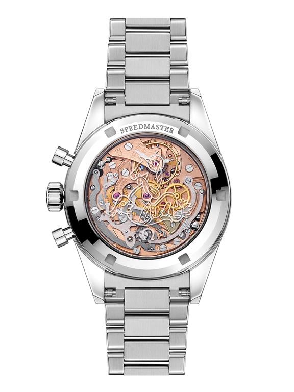 Kovina je bila uporabljena za ohišje s premerom 38,6 mm, zapestnico in kot PVD obdelavo kazalcev iz belega zlata. Prav tako so kazalci dobili klasično obliko zahvaljujoč dizajnu široke puščice, napolnjene z lumom. Omeniti velja tudi, da je model s 38,6 mm tudi najmanjši v liniji Heritage Speedmaster Calibre 321.