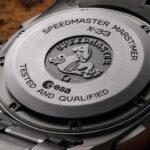 Če uro obrnete, se odkrije hrbtna stran ohišja s slavnim vgraviranim napisom Omega Speedmaster in logotipom morskega konjička. Sredica obkrožena z besedami SPEEDMASTER X-33 MARSTIMER, ESA TESTIRAN IN KVALIFICIRAN pa le doda piko na i o legitimnosti partnerstva in celovitosti ure.