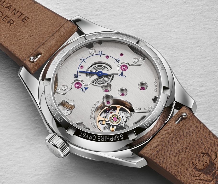 Najnovejša pridobitev zapestne ure bo na ogled vam in tistim redkim izbrancem, s katerimi boste delili informacije. Skozi kristal na zadnji strani je moč ozreti novi različico ročno navijalnega mehanizma, kaliber 473, ki je obenem tudi prva Orisova različica mehanizma brez rotorja. Nudi do 5 dni oziroma kar 120 ur zaloge energije navitja. Le-to je mogoče spremljati na indikatorju, vgrajenem na sam mehanizem. Tiktaka z 28.800 alternancami na uro, medtem ko je predvidena natančnost -3/+5 sekund na dan. Omembe vreden je še podatek, da Oris zelo dobrodušno ponuja 10-letno garancijo na mehanizem ter zagovarja, da je servisni interval preračunan na 10 let.
