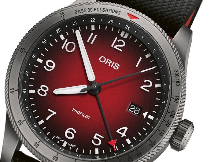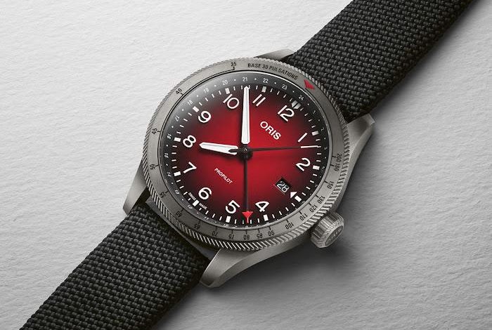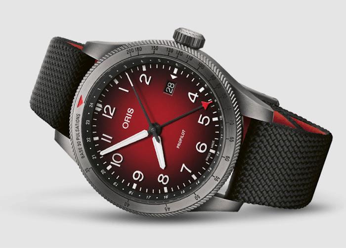 Novi Oris ProPilot GMT z rdečo gradientno številčnico, se ceni na 2.900 švicarskih frankov.