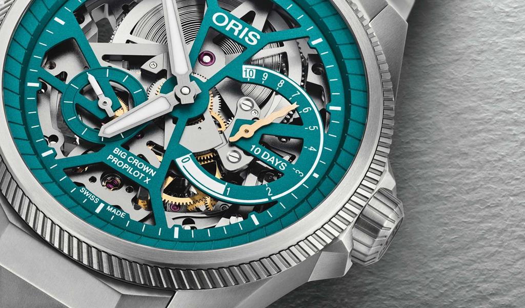 Oris ProPilot X Calibre 115 se od ostalih modelov ProPilot X razlikuje po skeletnem mehanizmu. Izdaja Year of the Snake Limited Edition ima odprto številčnio s cian barvo, ki se nanaša na element kitajskega zodiaka – les. Še en edinstven vidik te različice je ročica za kazalnik rezerve moči v obliki kačjega jezika. Prav tako je zlata, da lahko še bolje pritegne vašo pozornost.