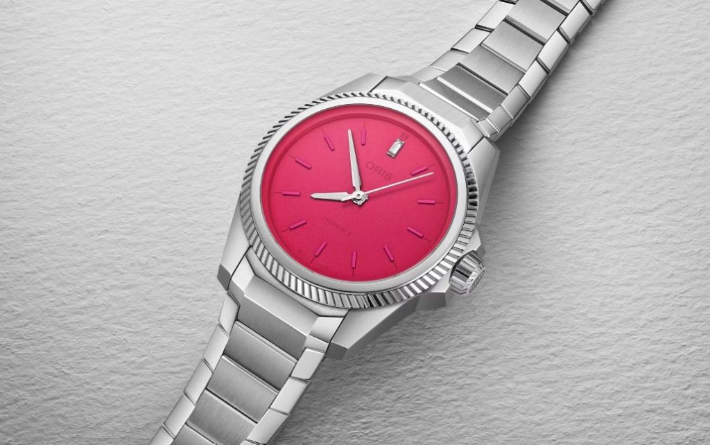 Če bi številčnico modela ProPilot X Miss Piggy poimenovali kar „rožnata“, bi bilo to zelo podcenjujoče. Odtenek rožnate barve je bogat, dočim je tekstura žametno matirana – lahko bi rekli, da se ne razlikuje preveč od polstene kože Miss Piggy. Indikatorji ur so močno poudarjeni v barvi fuksije, da ostanejo čitljivi nad preostalo številčnico. Srebrni kazalci močno izstopajo, prav tako kot laboratorijsko vzgojeni diamantni označevalec v obliki baguete ob 12. uri – simbol dekadence, ki ji je Miss Piggy predana. Logotipa Oris in ProPilot X sta duhovita in zagotavljata, da nič tako kričečega, kot je ime blagovne znamke, ne more biti pomembnejše od vpliva Miss Piggy.