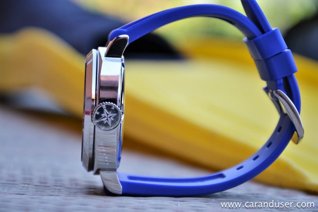 Posledično je model Aquamarine zelo simpatičen ”delovni konj” – ura za vsakdan, za nekoga s sorazmerno aktivnim življenjskim slogom. Zajetnejša dimenzija ne ovira dnevne uporabe, ne glede na dejavnosti. Popularna kot tudi higienska poteza je izbira paščka iz kavčuka, katerega se po intenzivni aktivnosti enostavno opere z vodo. In zakaj je lahko ura za vsak dan ter vse priložnosti?