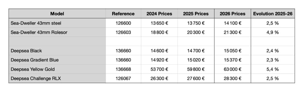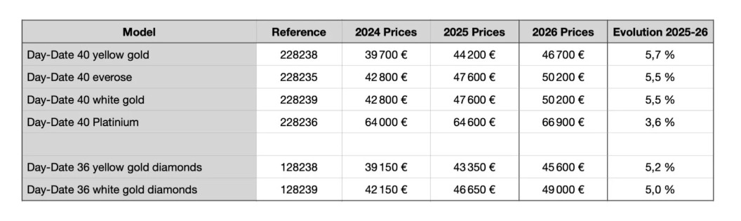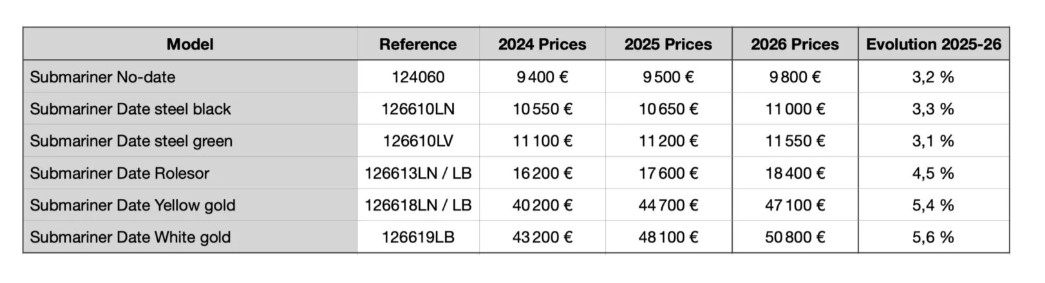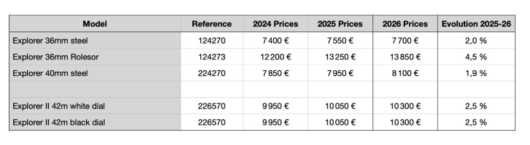 Podroben cenik modelov Rolex za leto 2026, si lahko ogledate v priloženi galeriji.
