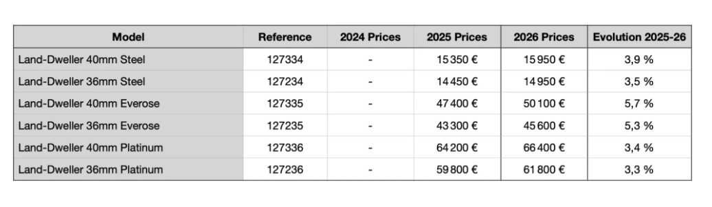 Novo koledarsko leto pogosto spremlja popravek cen, ki je običajna praksa v večini proizvodnih industrij. Urarji pri tem niso izjema, saj cene zapestnih ur usklajujejo enkrat ali dvakrat na leto, glede na to, kako se na trgu odražajo spremembe cen surovin, plač, proizvodnih in drugih zunanjih stroškov, pa tudi preprosto dejstvo, da obstaja inflacija, ki vpliva na večino potrošniškega blaga.