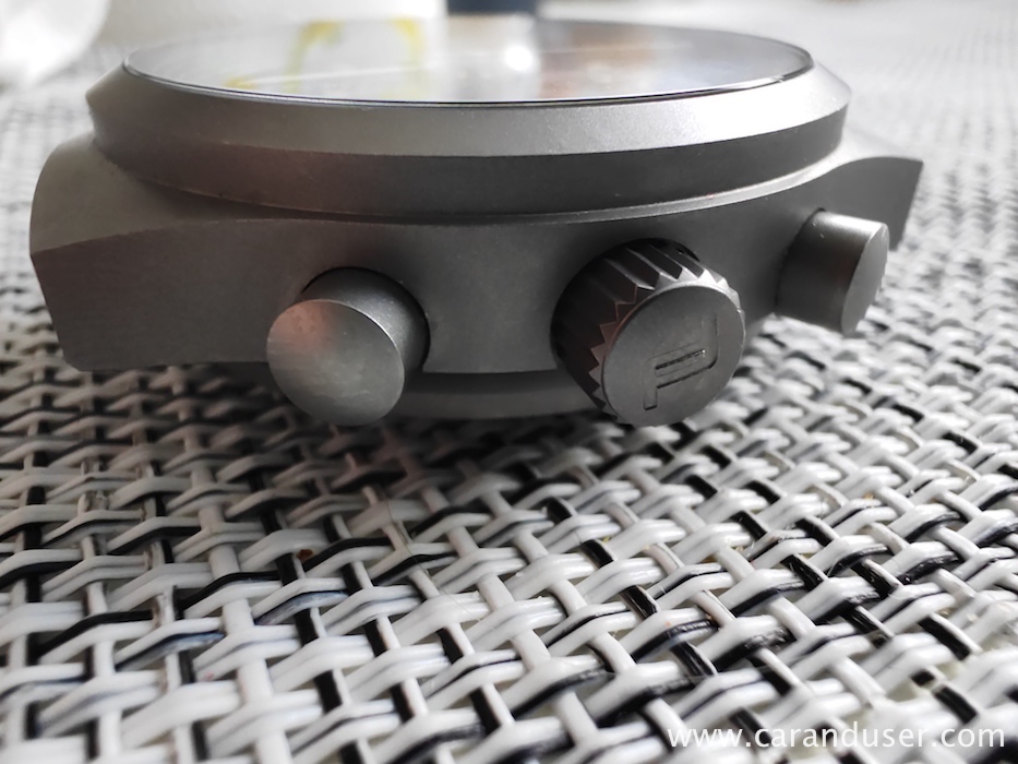 Kot je v domeni oblikovalskega studia, so vse aplikacije eksaktne. Zapestnico iz titana, ki jo je moč zavoljo sistema hitre zamenjave v hipu zamenjati s priloženim usnjenim paščkom, je izjemno komfortna. Seveda je celokupna lahkotnost zagotovljena zavoljo izbranega materiala – titan. Stekleno peskana površina doda zanimiv zaključek (malce lesketajoč), ki pa se s težavo ujame na ”trak”.