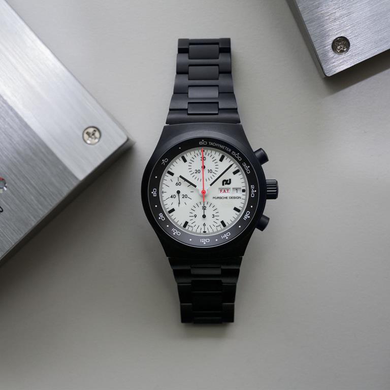 Porsche Designov Chronograf 1 že najverjetneje poznate, tokratna izdaja pa izstopa ravno po svoji beli številčnici. V grobem so specifikacije iste, kar pomeni, da je ohišje novega modela meri v premer 40,8 mm in 14,15 mm v višino. Izdelano je iz titana, katerega odpornost je izboljšana z mat črno karbidno prevleko. Enak material z matiranim zaključnim slojem je uporabljen tudi na zapestnici z zložljivo zaponko. Hrbtna stran ohišja ima privijačen pokrov iz titana in je vodotesna do tlaka 10 barov oziroma 100 metrov globinskih metrov.
