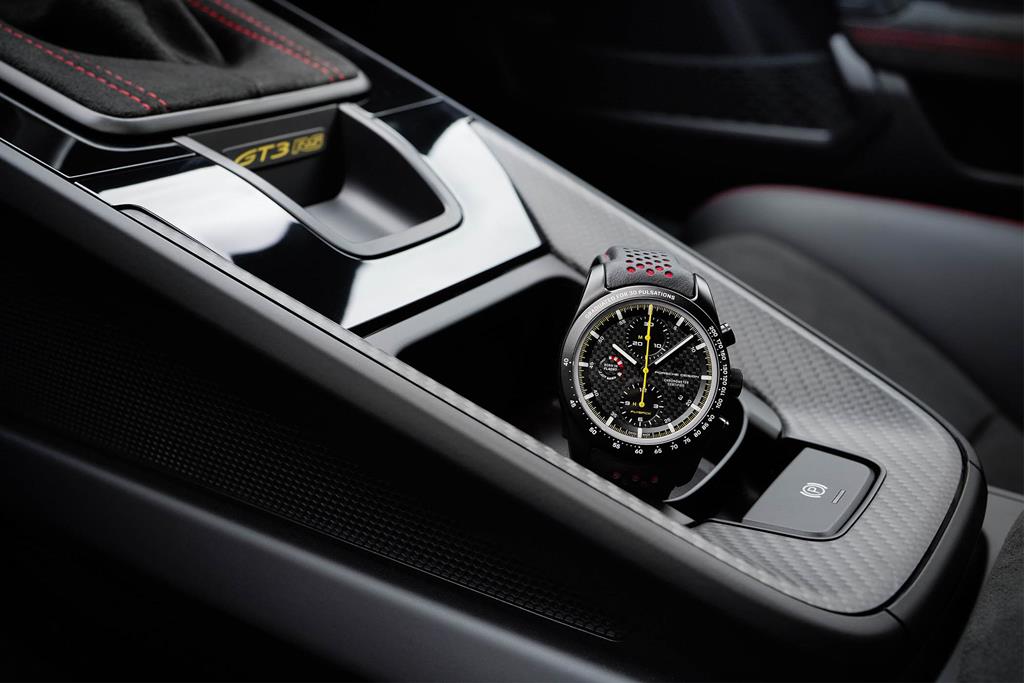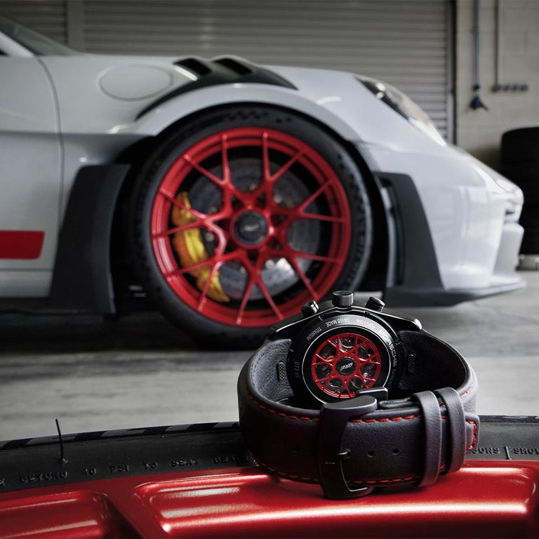 Zapestna ura Porsche Design Chronograph 911 GT3 RS z vstopno ceno 9.750 evrov je že na voljo za ujemajočo se konfiguracijo s cestno-dirkalnim bolidom.
