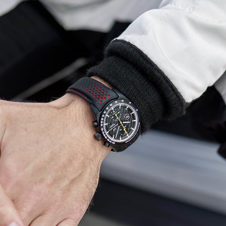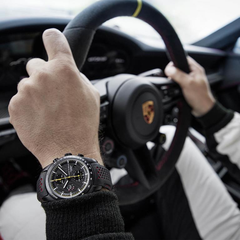 Zasnova športnega kronografa oblikovalskega studia je že poznana s številnih predhodnih izdaj v povezavi z avtomobili znamke Porsche. Ohišje premera 42-milimetrov ponuja dve konfiguraciji – ”surovi” titan ali črno prevleko iz titanovega karbida. Mogoče je izbirati med tremi dizajni lunete s tahimetrično, 60-minutno ali pulsometrično lestvico, v kombinaciji titana ali prevleke iz titanovega karbida, s čemer se ustvari kontrast ali enotnost z ohišjem.
