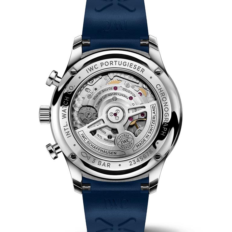 Razen barvne sheme številčnice, nova referenca ni prinesla tehničnih sprememb. No, druga posodobitev se nanaša še na pašček. Do zdaj smo lahko videli uro Portugieser Chronograph nošeno na aligatorskih paščkih, jekleni zapestnici ali celo na okolju prijaznih paščkih. Tukaj je Portugieser nameščen na modrem teksturiranem gumijastem paščku z zaponko, ki prispeva k športnemu karakterju zapestne ure. Tako kot večji brat, je tudi ta markanten kronograf del stalne zbirke in je v prodaji za 8.950 evrov.